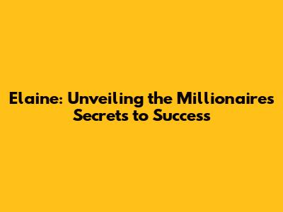 Elaine: Unveiling The Millionaire's Secrets To Success