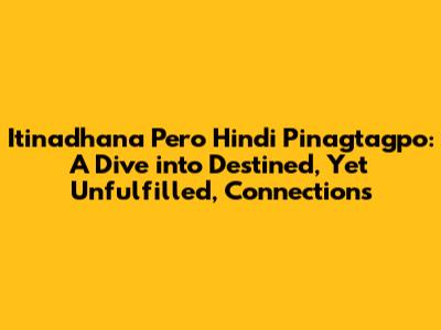 Hey guys! Ever felt like you were destined to meet someone, that the universe was practically screaming for you to connect, but… it just didn't happen? That, my friends, is the essence of "Itinadhana Pero Hindi Pinagtagpo." This phrase, deeply rooted in Filipino culture, translates to "fated but not brought together." It's a poignant exploration of the idea that two souls might be written in the stars to meet, to experience something profound together, but for reasons beyond their control, the connection remains elusive, a what-could-have-been scenario. Let's delve deep into this fascinating concept, exploring its nuances, its cultural significance, and why it resonates so powerfully with so many of us. We'll unpack the ideas of fate, free will, and the bittersweet nature of unfulfilled potential. Prepare yourselves, because we're about to embark on a journey through the labyrinth of the heart, the cosmos, and everything in between.