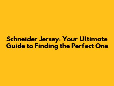 The Ultimate Schneider Jersey: A Symbol of Fandom